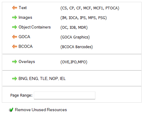 This option leaves only the text, removing all images, barcodes, GOCA graphics, object containers, non-printable information, and unused resources.