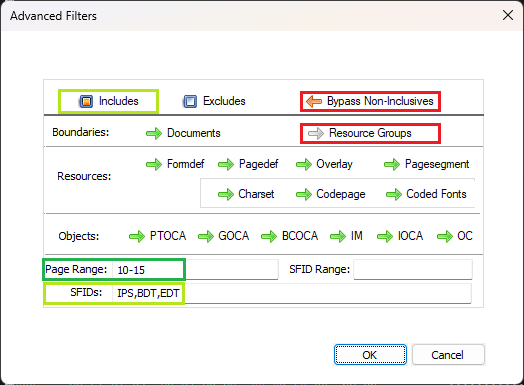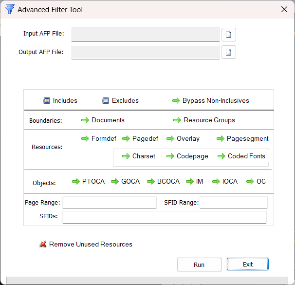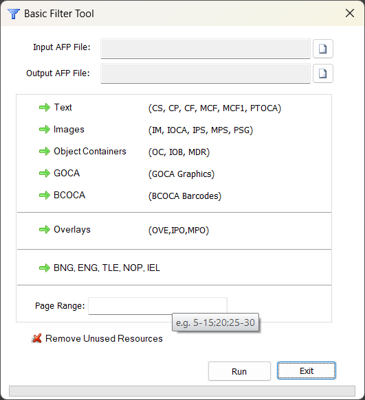 The Basic Filters allow users to easily trim AFP files by extracting selected items. It provides flexibility for various use cases. Below are some examples of its applications.